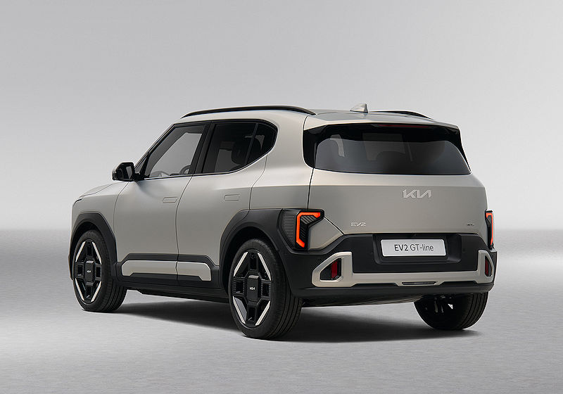 Optisch steht der EV2 voll und ganz für die Kia-Designphilosophie „Opposites United“. Senkrechte Akzente, inspiriert von den größeren Kia-Stromern, geben dem kompakten SUV eine selbstbewusste Präsenz. Mit 4,06 Metern Länge verbindet der EV2 eine handliche Grundfläche mit kräftigen Proportionen.