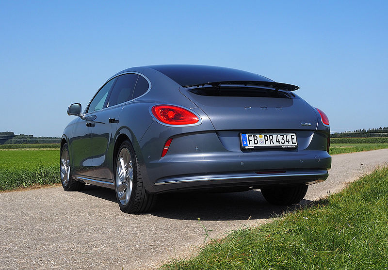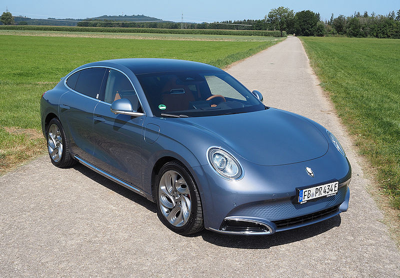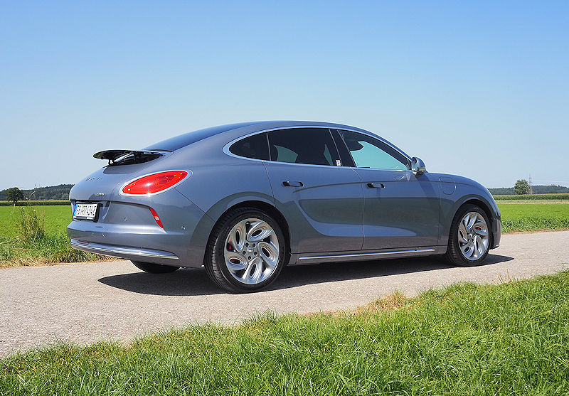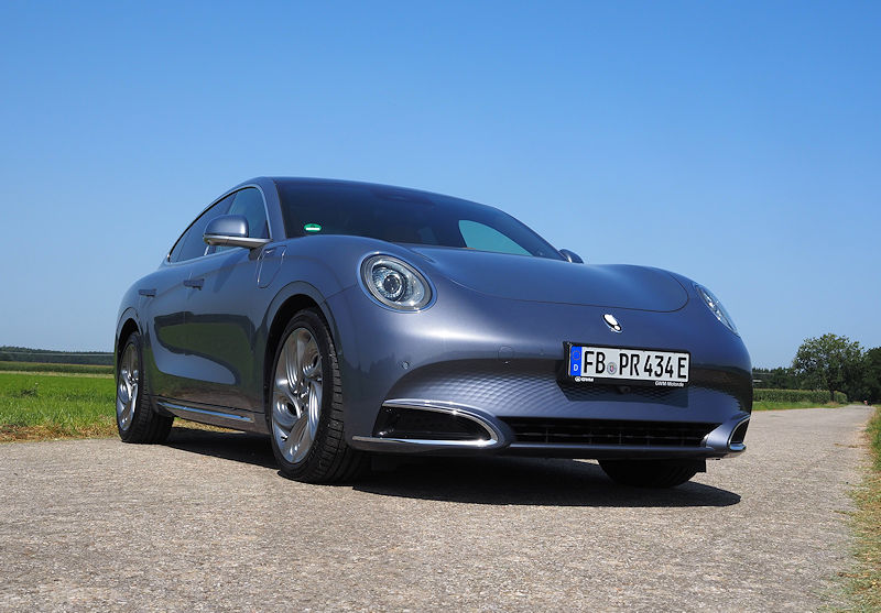 Die markanten LED-Scheinwerfer in Rundoptik verleihen dem Gesicht des 07 einen fast schon ikonischen Ausdruck. Türgriffe, die bündig in die Karosserie eingelassen sind, rahmenlose Fenster und der fließende, nahezu skulpturale Linienverlauf erzeugen eine stimmige Mischung aus Dynamik und Anmut. Das serienmäßige Panorama-Glasdach zieht sich bis weit ins Heck und lässt den Innenraum in Licht baden. In den höheren Ausstattungen Pro und GT setzt der elektrisch ausfahrbare Heckspoiler ein selbstbewusstes Statement. Ist jedoch mehr als nur ein Eye-Catcher, vereint er Funktion und Emotion. Dazu gleich mehr.