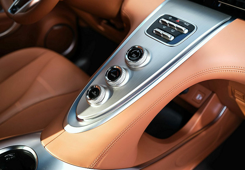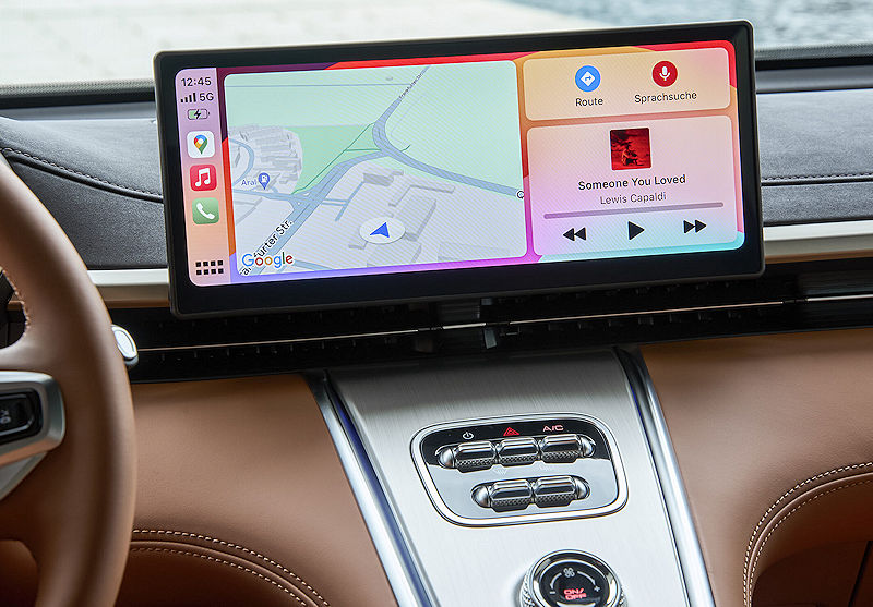 Der Blick fällt sofort auf die scheinbar schwebende Mittelkonsole mit ihren gebürsteten Alu-Akzenten. Ein echter Hingucker, reduziert und trotzdem hochwertig. Die wichtigsten Funktionen lassen sich über Tasten und Drehregler steuern, der Rest läuft über den superschnellen 12,3-Zoll-Touchscreen.