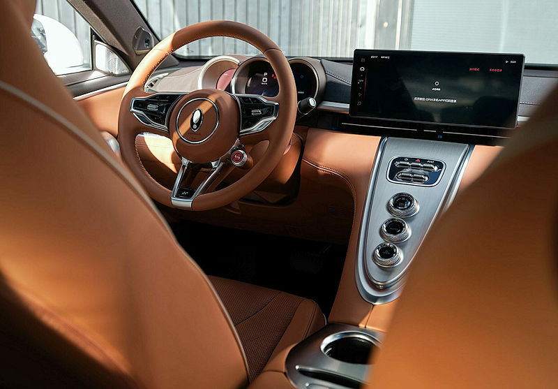 Innen empfängt einen ein Ambiente, das sofort entschleunigt. Entweder in dezentem Schwarz oder – in der Pro- und GT-Variante – in diesem warmen, edlen Braunton, in den ich mich sofort verliebt habe. Gerade in dieser Ausführung wirkt das Cockpit wie ein sanft leuchtender Kokon. Die Materialien fühlen sich hochwertig an, sehen nach feinem Leder mit Ziernähten aus, sind aber komplett vegan – und ehrlich, das merkt man nicht eine Sekunde.