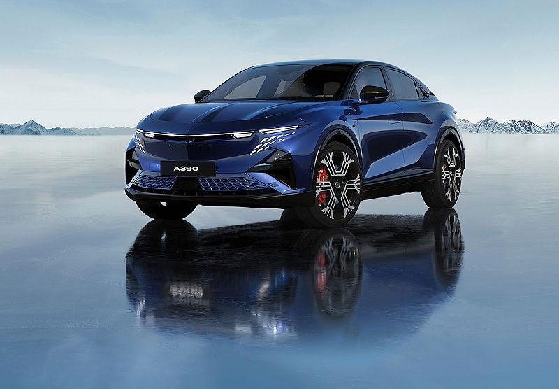 Sechs Karosseriefarben, wahlweise schwarzes Kontrastdach und exklusiv designte Räder (20 oder 21 Zoll) bieten Spielraum zur Individualisierung. Die A390 misst 4,62 m in der Länge, bleibt aber trotz Fünfsitzigkeit erstaunlich kompakt.