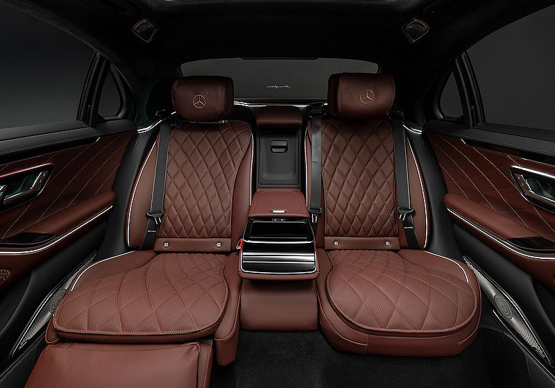 In der zweiten Reihe angekommen, wechselt die Perspektive komplett. Hier fühle ich mich wahrlich königlich. Die S-Klasse schafft eine perfekte Mischung aus Entspannungsoase und mobilem Arbeitsplatz. Fünf Fondsitzvarianten stehen zur Wahl, fein abgestuft und weiter optimiert. Von einer dreisitzigen Konfiguration über luxuriöse Einzelsitze bis hin zu Varianten mit Liegefunktion und Business-Mittelkonsole. Hier bleibt kein Wunsch unerfüllt.