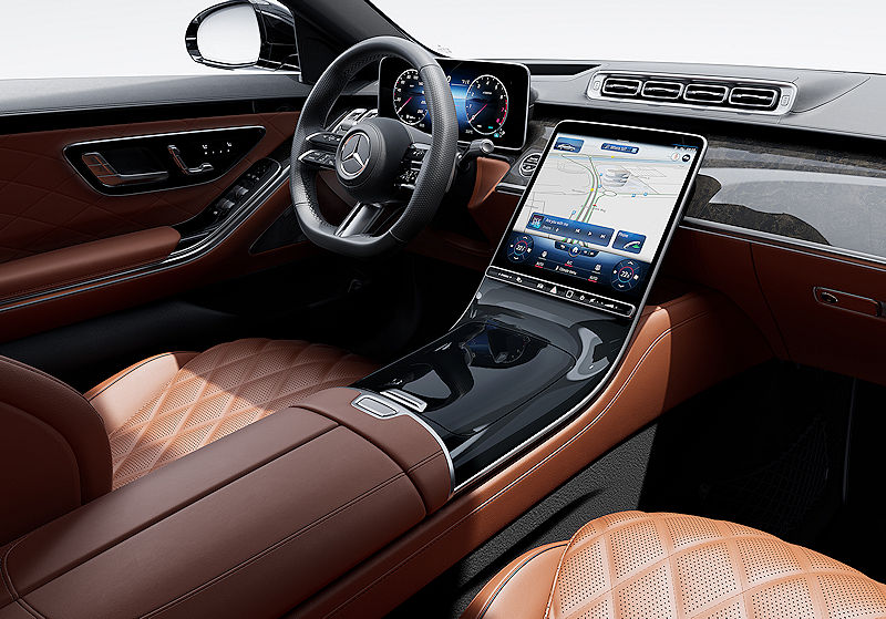 All das fügt sich zu einem Infotainmentsystem, das personalisiert, permanent aktuell und technisch beeindruckend ist. Over-the-air-Updates halten die S-Klasse stets am Puls der Zeit, während Funktionen wie Dolby Atmos, MBUX Zero Layer und das serienmäßige OLED-Zentraldisplay die Benutzererfahrung nochmals verfeinern. Trotz dieser immensen Funktionsfülle bleibt die Bedienung erstaunlich einfach und klar strukturiert. Der 12,8-Zoll-Touchscreen und das digitale Instrumentendisplay bilden das intuitive Zentrum der Steuerung. Gestochen scharf, logisch aufgebaut und angenehm übersichtlich.