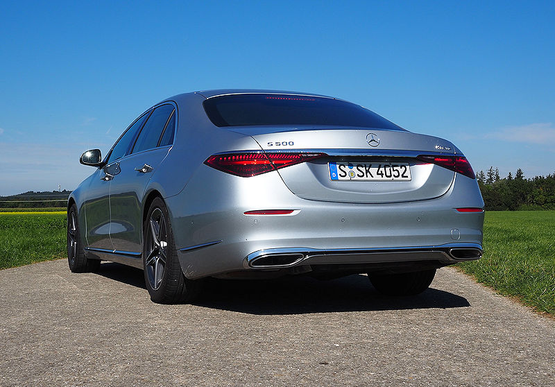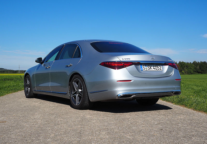 Wie rasant die von mir getestete Limousine S 500 4MATIC tatsächlich unterwegs ist, verrät schon ein kurzer Blick auf die Stoppuhr. Trotz der imposanten Fahrzeugmasse drückt mich die Limousine bei Vollgas sanft, aber unmissverständlich in die Sitze. Sie kennt ihre Kräfte sehr genau, setzt sie aber mit Stil ein – impulsiv, aber niemals grob. Die S-Klasse bleibt auch unter voller Last manierlich und zieht mit einer Leichtigkeit davon, die einem ein kleines Lächeln entlockt.