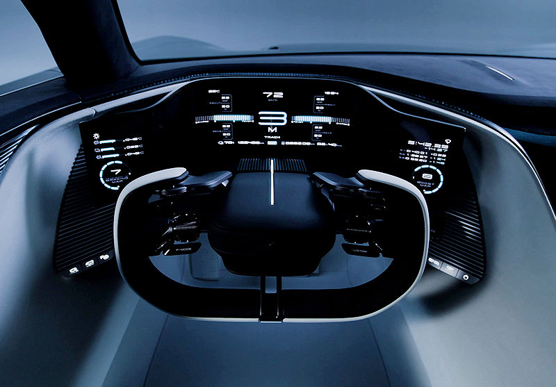 Im Innenraum dominiert ein klares Ziel: Der Fahrer steht im Mittelpunkt. Die wichtigsten Bedienelemente liegen exakt dort, wo sie hingehören, die Schalter sind blind bedienbar, das speziell entwickelte Lenkrad ermöglicht präziseste Lenkbefehle ohne Umgreifen. Das Ergebnis ist ein reduziertes, mechanisch inspiriertes Cockpit – geschaffen für Fokus, Emotion und absolute Kontrolle.