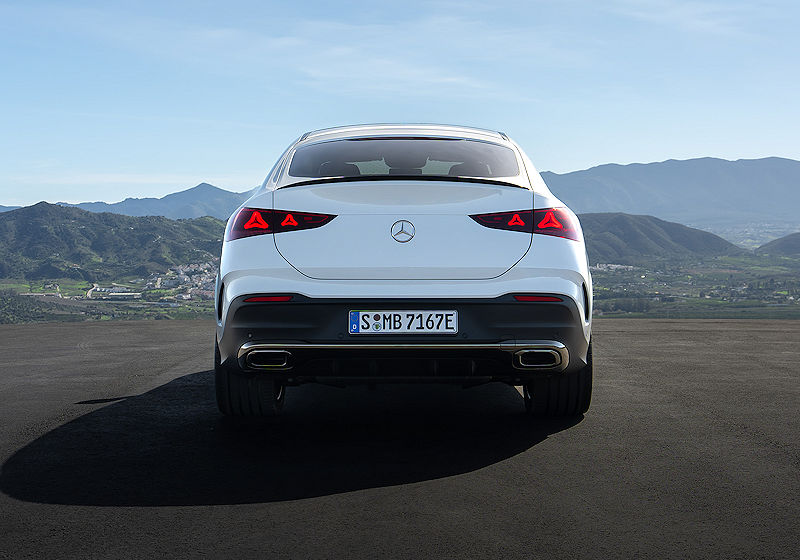 Am Heck greifen dreidimensionale Stern-Signets in den Rückleuchten das Markenmotiv erneut auf und setzen einen stilvollen Schlusspunkt. Ergänzt wird das Ganze durch neue 20-Zoll-AMG-Räder, die die Haltung des GLE Coupé noch einmal schärfen.