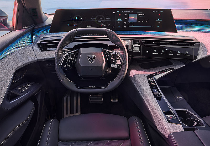 Zur erweiterten Serienausstattung gehören das PEUGEOT i-Cockpit® mit schwebendem 21-Zoll-HD-Panoramadisplay, das Infotainmentsystem PEUGEOT i-Connect® Advanced sowie die individualisierbaren i-Toggles. Dazu kommen eine 15-kW-Induktivladestation für das Smartphone auf der Mittelkonsole, ein Gepäckraumtrennnetz und ein Reifenpannenset.