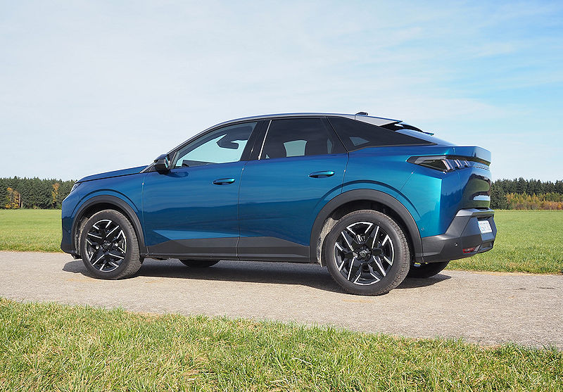 Konsequenz zeigt Peugeot auch beim Feinschliff. Chrom findet sich hier nicht mehr. Stattdessen dominieren lackierte Elemente – Meteor Grau an Front und Heck, glänzendes Schwarz an Spiegelkappen und unteren Karosseriebereichen. Das Ergebnis wirkt moderner, klarer und hochwertiger.