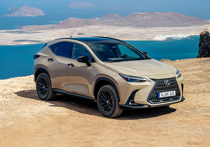 Besonders spannend wird es im Zusammenspiel mit der exklusiven Overtrail-Lackierung Saharabeige. Der warme, fast schon erdige Ton trifft auf die dunklen Kontraste und erzeugt genau diesen spannenden Mix aus Eleganz und Abenteuerlust, der dem NX überraschend gut steht. Ergänzt wird das Farbangebot durch sechs weitere Lackierungen, während der in Grau gehaltene Markenschriftzug am Heck das Gesamtbild dezent abrundet.
